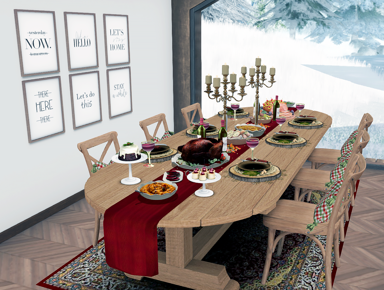 Welcome to the Festive Dinning Room. I love the colors in this set and the furniture is color changing. It goes great with the overall feel of the house. See the outside and the living room in previous posts. I still have one more post on this home so stay tuned. Evhah Store - Rustic Set* Candel…